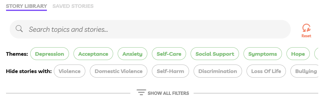 Select themes of interest, and hide stories that contain triggers. Also, your personal profile allows you to mark permanently hide stories with certain triggers, and indicate your interest for specific themes.