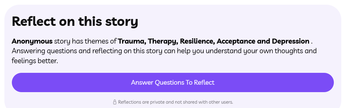Each story concludes with space for reflection. Reflections are private. All your data remains strictly in your control; you can purge your browsing history at any time, and also delete your account.